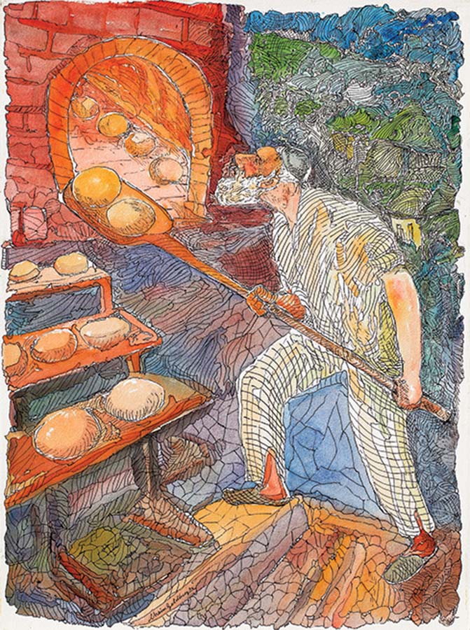 Piekarz, akwarela i tusz