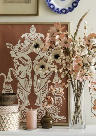 • sztuczne kwiaty w designerskim wazonie