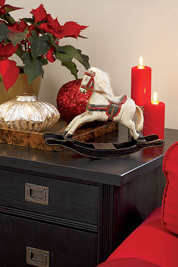 • Drewniany koń na biegunach. Choinka sentymentalna