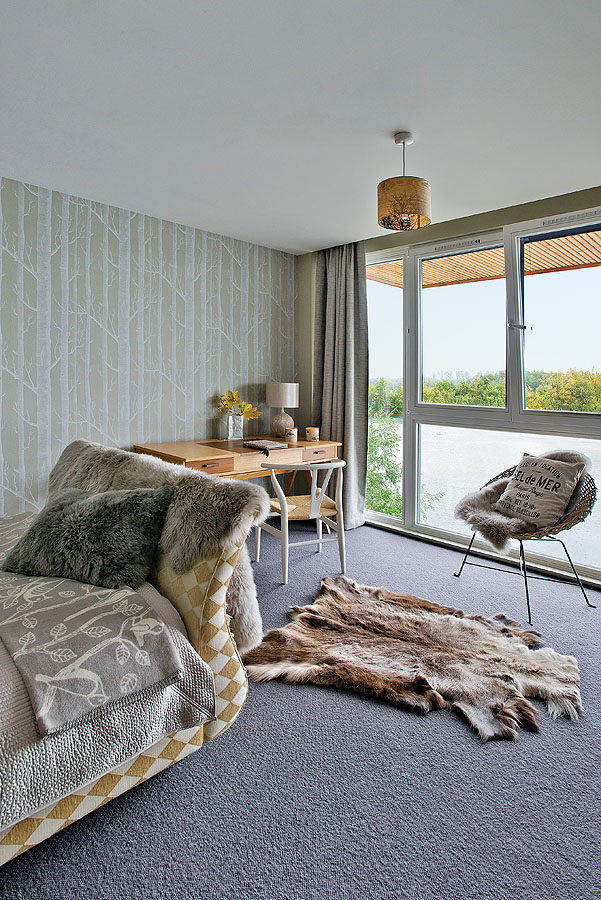 Dom nad jeziorem jest ogromny. Króluje w nim szarość, którą ogrzewają żółte dodatki i drewno z modrzewia syberyjskiego. Są