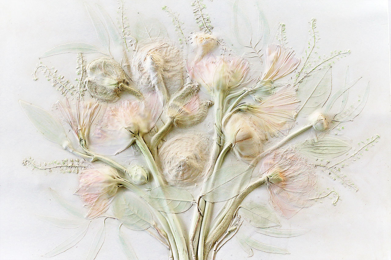 Bukiet na długo Odcisk wiązanki ślubnej w gipsie. Pomysł z pracowni Romy Roman, portretyroslin.tumblr.com