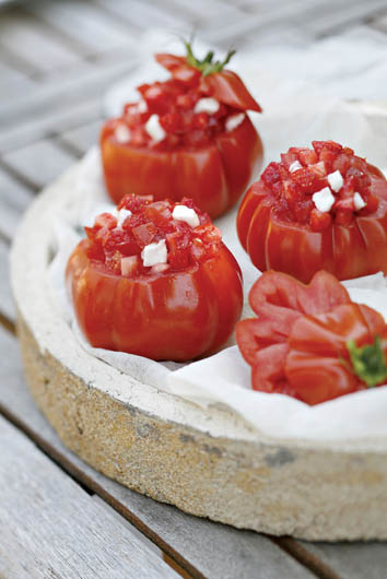 • Chrupiąca bruschetta z pieczonymi pomidorami i fetą.