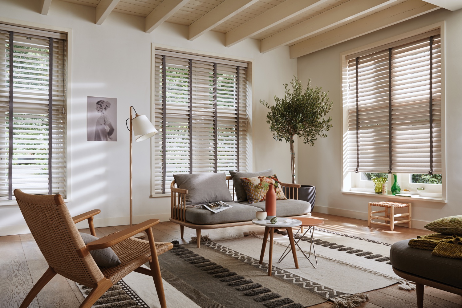 Drewniane shuttersy, aranżacja marki Luxaflex, luxaflex.de