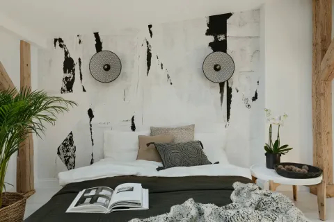 Wnętrze z malarską tapetą na ścianie – to 77-metrowe mieszkanie w kamienicy, mimo ograniczonego budżetu, jest eleganckie i pełne charakteru!