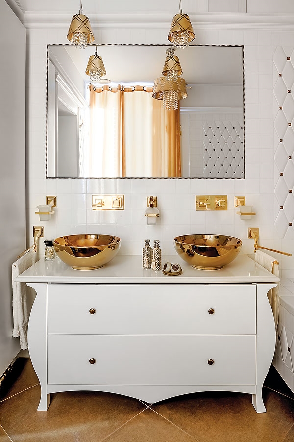 Połączenie bieli ze złotem w łazience może wyglądać pięknie i luksusowo.