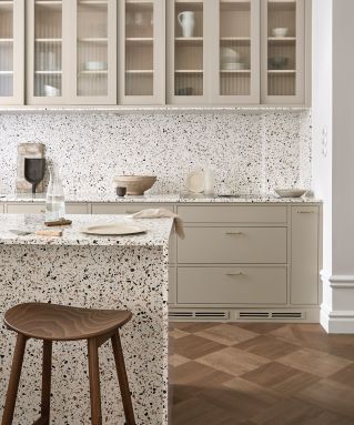Materiałem, który pasuje do wnętrz nowoczesnych i kolorowych łazienek, jest także lastryko, np. w postaci płytek z kolekcji HIKA marki Cersanit
