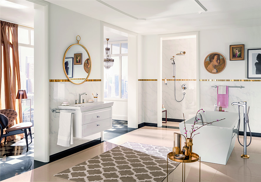 Salon kąpielowy z armaturą łazienkową marki Hansgrohe, greston.com.pl