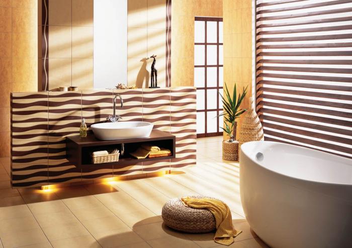 Prosto z Czarnego Lądu - kolekcja Amber w brązach i żółcieniach. Za płytki w paski (25 x 36 cm) zapłacimy 40 zł/m2 netto. CERAMIKA TUBĄDZIN
