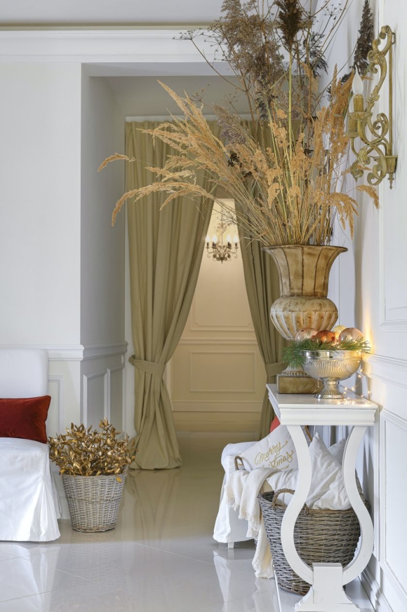 Wigilia Białej Damy – elegancki dworek urządzony w bieli, beżu i złocie gotowy na święta
