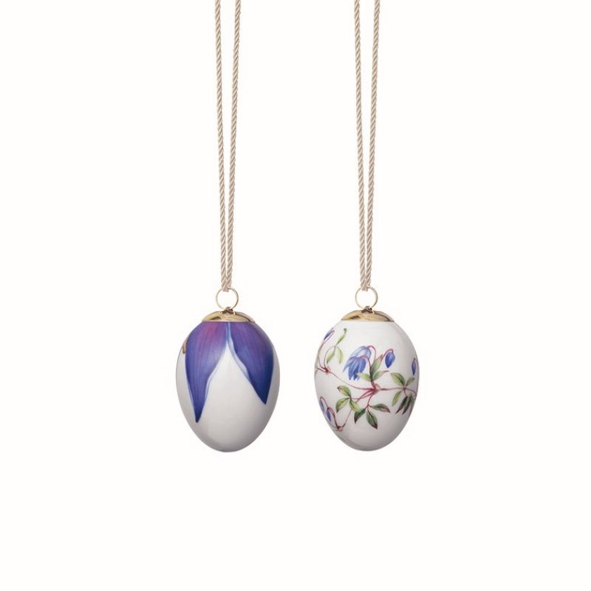 Porcelanowe jajka-zawieszki „Powojnik” i „Płatki powojnika”, Royal Copenhagen, rosenthal-gallery.com