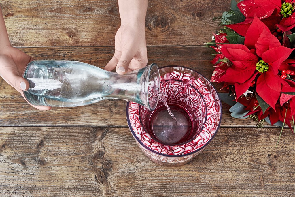 dekoracje bożonarodzeniowe na stół – wazon z cukierkami