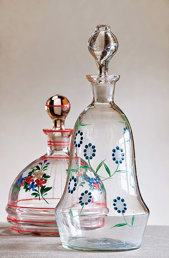 • Karafki ze szkła ciętego i barwionego.