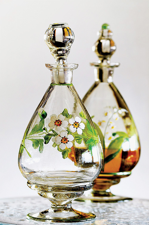 • Karafki w malowane kwiaty. Do wódeczki