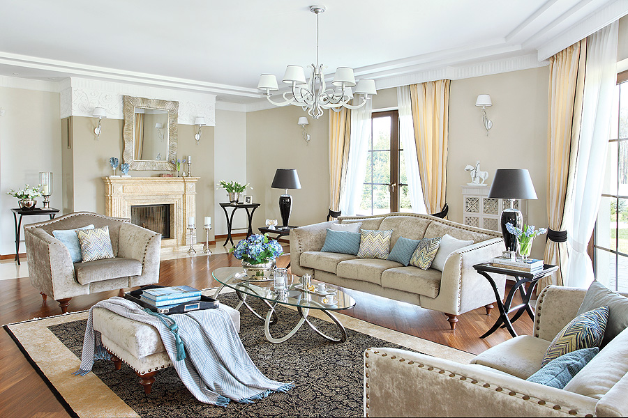 • aranżacja salonu w stylu glamour