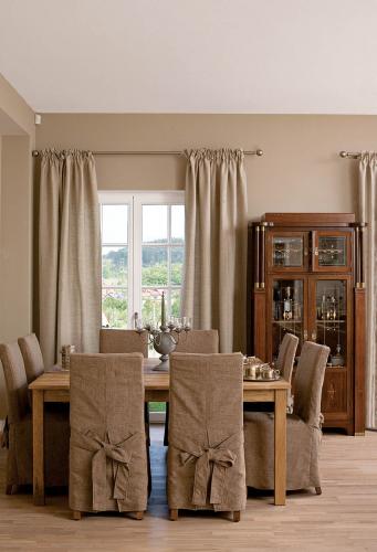 • Pokrowce na krzesłach komponują się z bieżnikami na stołach.
