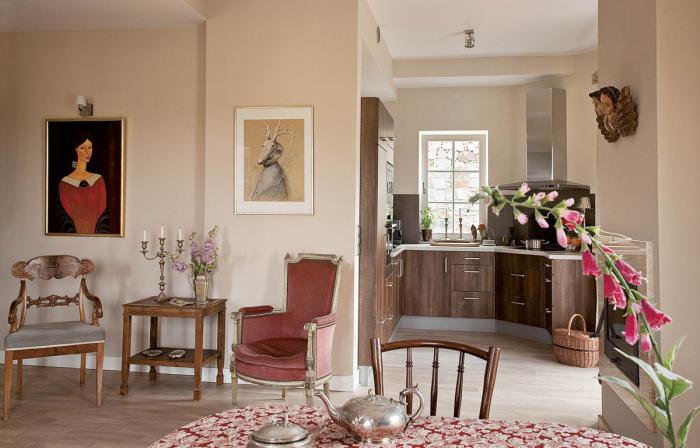 • Prostota i barok- takie połączena Ewa lubi najbardziej. Strojne lustro, lekkie fotele z IKEA i naturalne stoły z JYSK.