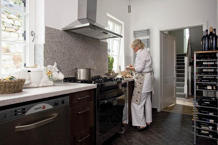 • To dla widoków z okna Kucharscy kupili ten dom. Pod kolor szarorudego muru urządzili kuchnię.