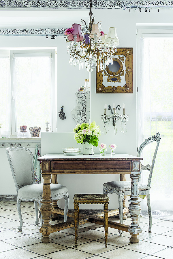 • W całym domu zobaczymy kryształowe kinkiety i żyrandole.