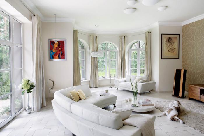 Wnętrze jest lekkie i stonowane, to doskonałe tło dla obrazów Tomasza Sętowskiego, jednego z ulubionych malarzy rodziny.