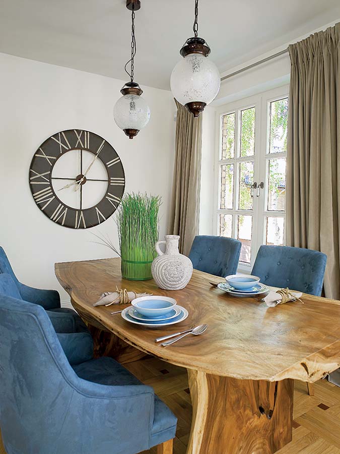 Stół z Bali to nowy nabytek. Kupili go w House & More. Zegar na ścianie jest z Decolor.