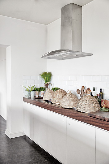 • W kuchni dominuje biel przełamana naturalnym kolorem drewna.