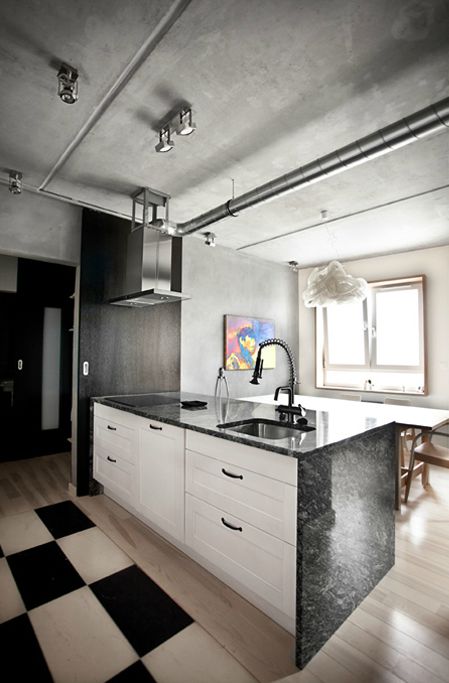 70-metrowe mieszkanie urządzone jest nowocześnie, dizajnersko i minimalistycznie - co sprawia, że wydaje się znacznie większe. Mimo surowego betonu, który dominuje w mieszkaniu, architektom odpowiadającym za wystrój wnętrza udało się stworzyć nie tylko przytulny i prywatny klimat, ale także maksymalnie funcjonalnie wykorzystać przestrzeń.   Nowoczesna aranżacja   Dla właścicieli mieszkania najważniejsza przy aranżacji była przestrzeń i elastyczne r