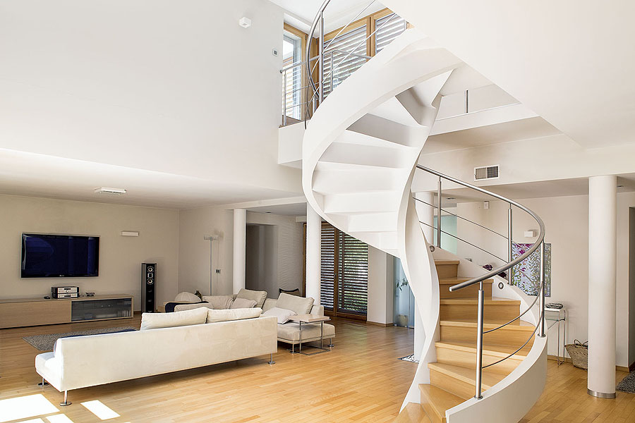 Bez filongów i ćwierćwałków, za to z mnóstwem drewna, bo bez niego dom jest zimny jak salon samochodowy. Pośrodku Ula i Andrzej Mogielniccy ustawili niezwykłą rzeźbę – włoskie schody.     Okolica piękna, sąsiedzi fajni i niedaleko do miasta Jestem wariatką architektoniczną – śmieje się Ula Mogielnicka, wspominając, ile już mieszkań wymyśliła  i urządziła. Zanim pojawił się dom, mieszkała z mężem Andrzejem – znanym autorem tekstów