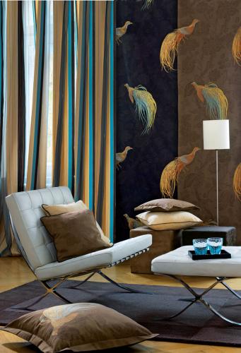• Tkaniny nie tylko na fotelach. Można udekorować nimi ściany. Modern Meets.