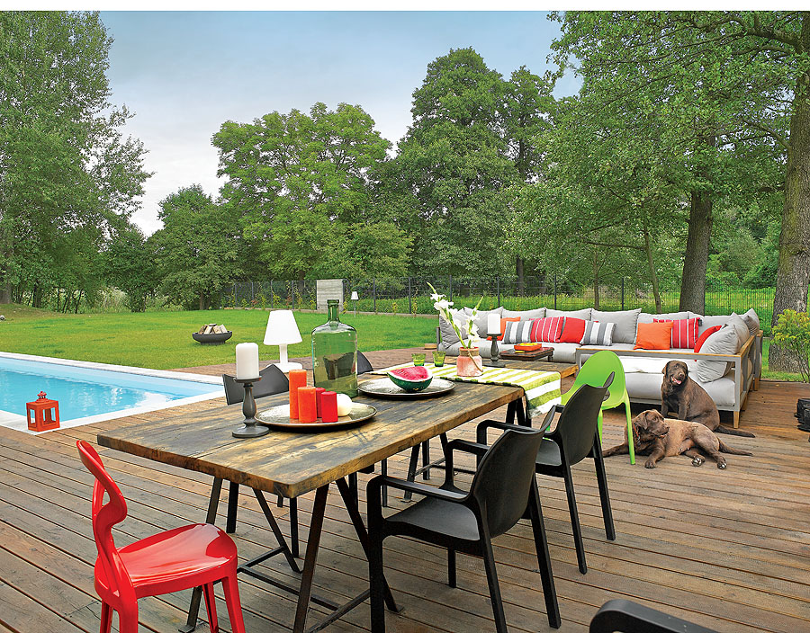 • Kiedy jest cieplej, wszyscy przenoszą się na drewniany taras.