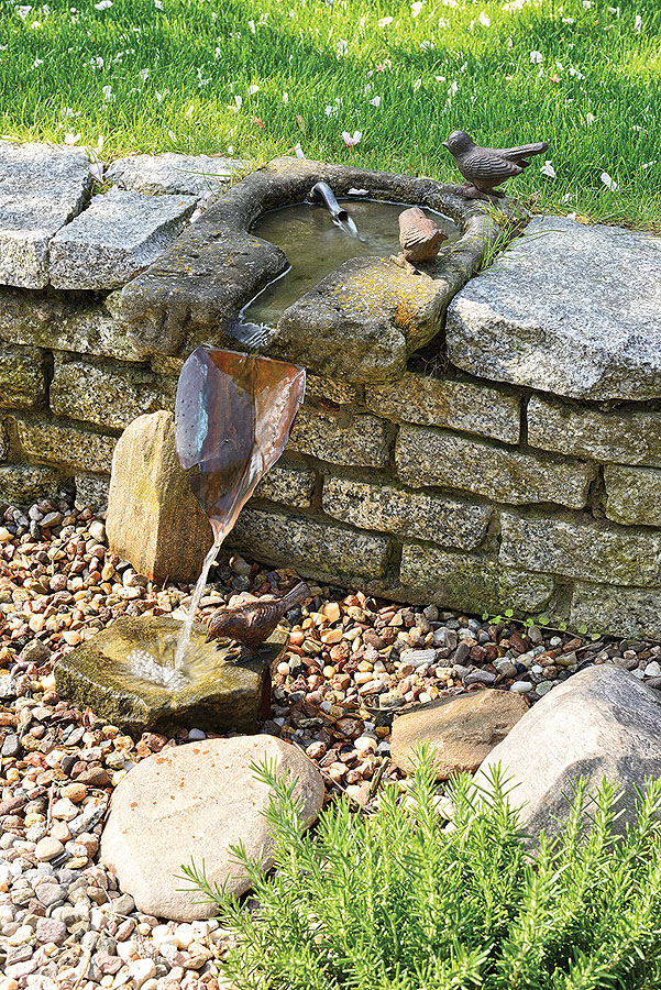 • Nie brakuje w ogrodzie strumyków, sztucznych źródełek i poidełek dla ptaków. Wszystko subtelnie jest wtopione w zieleń.