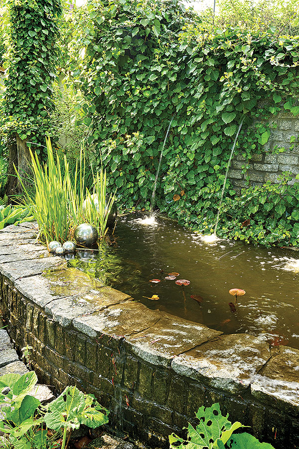• Nie brakuje w ogrodzie strumyków, sztucznych źródełek i poidełek dla ptaków. Wszystko subtelnie jest wtopione w zieleń.