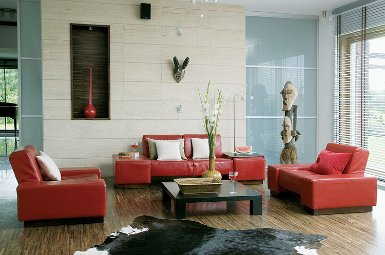 • Czerwoną sofę i fotele gospodarze kupili w firmie Mebel Plast. We wnęce stanął wazon z Bo Concept - dobrany