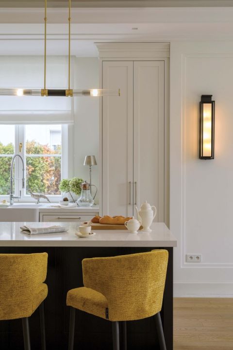 Nowoczesny apartament pod Łodzią – przytulne wnętrza w odcieniach bieli i granatu z klasycznymi detalami