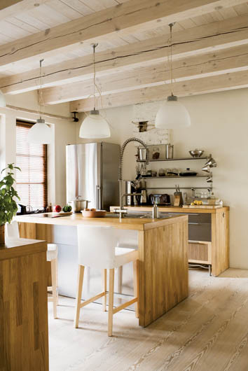 Światło, przestrzeń i drewno w roli głównej. Do tego ręcznie lepiona cegła i parę mebli.