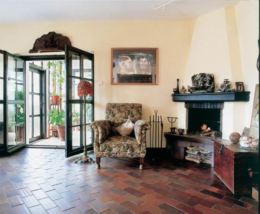 • Salon- dużo światła i kominek. Dom sztuki