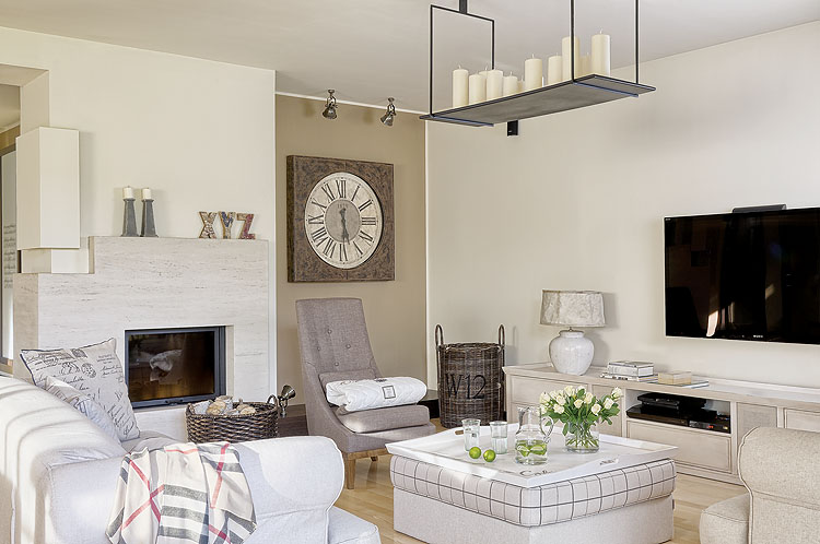 • Zamiast kominka miejsce na świece. Dom w stylu american beach
