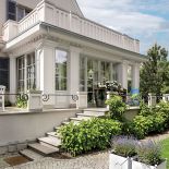 • Kuchnię połączono z przeszkloną werandą-jadalnią.