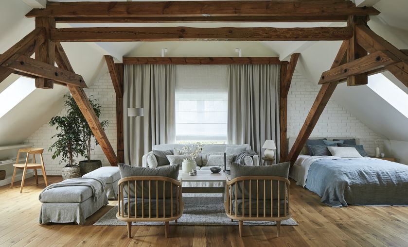 Mocno skandynawski i odrobinę rustykalny, pełen dobrego wzornictwa i naturalnych tkanin – dom urządzony w dawnej mleczarni uwodzi przytulnością i spokojem.