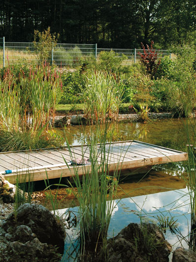 • Z pomostu można kontemplować piękno ogrodu albo podglądać wodne żyjątka w krystalicznie przejrzystej wodzie.