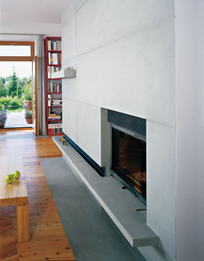• Przed minimalistycznym kominkiem mozna się rozsiąść w na wygodnej kanapie.