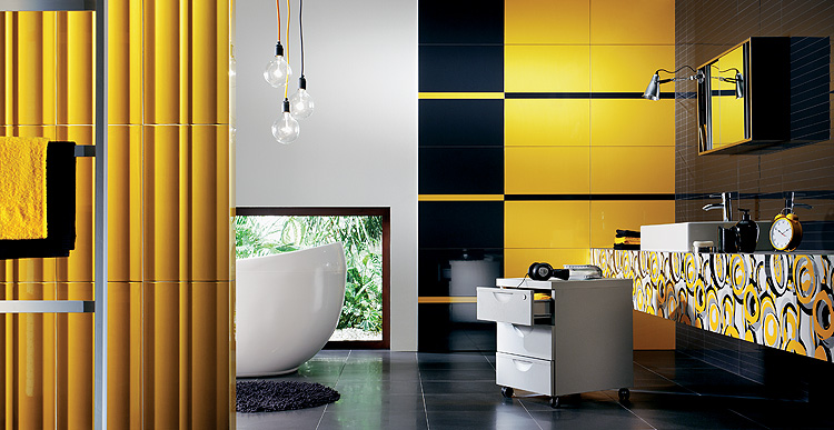 Płytki z serii Yellow, dekor z połyskiem w cenie 79,34 zł/szt., Tubądzin
