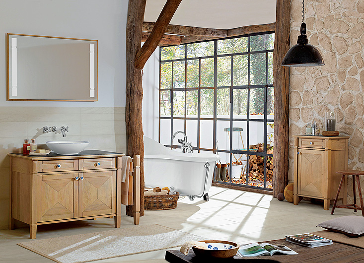 Meble z serii True Oak z litego dębu: szafka pod umywalkę – ok. 13 000 zł, lustro za 5170 zł, wieszak na ręczniki – 2247 zł, Villeroy & Boch