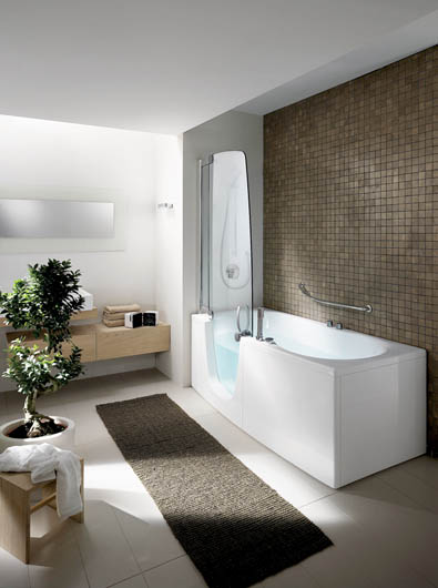 Seria 385: wanna połączona z prysznicem, osiem dysz do hydromasażu. TEUCO