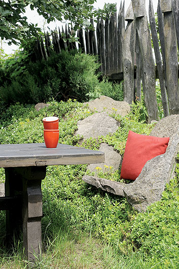 dzięki zamiłowaniu do zbierania porzuconych przez morenę pamiątek powstał tron, czyli kamienny fotel w ogrodzie,