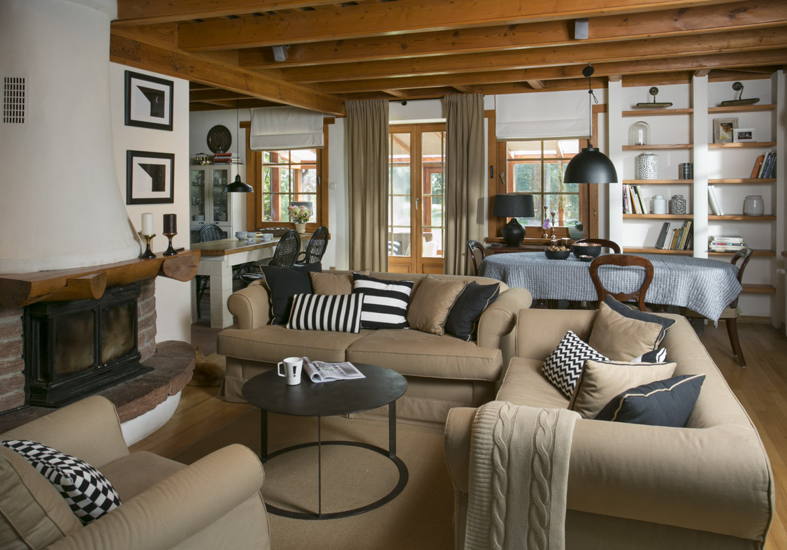 Kilka lat temu pokazywaliśmy na łamach magazynu ten drewniany dworek na Mazowszu.   Dom był zbudowany w czasach, kiedy niewiele było ciekawych sklepów, ale po latach, właścicielka całkowicie odmieniła wnętrze. Obyło się bez wielkiego remontu. Nowe rolety, dekoracje okien, meble i dodatki sprawiły, że dom zyskał nowe życie. Cały czas jest to drewniany dworek, ale urządzony zgodnie z nowoczesnymi trendami.   Tak dworek wyglądał kilka lat wcześniej: DREW