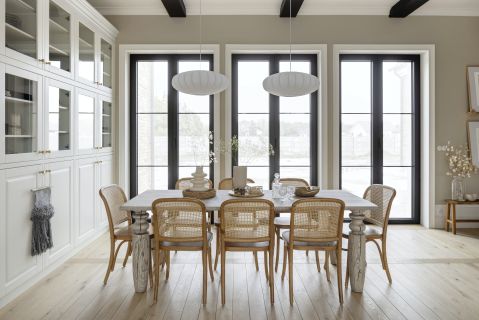 Rezydencja w drewnie i błękitach – w tych wnętrzach połączono elegancję stylu hamptons i naturalność stylu eko