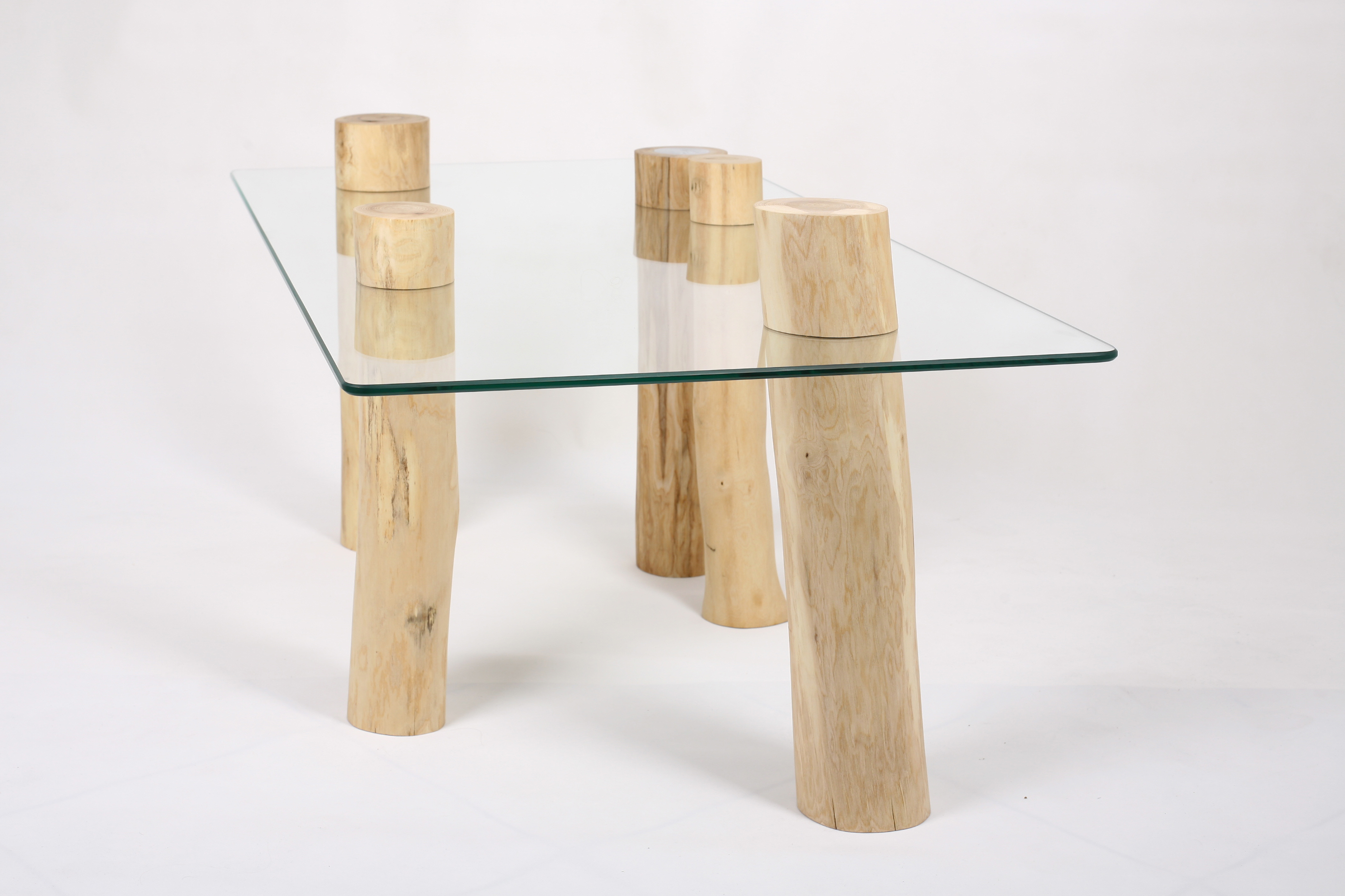 Stolik kawowy Wood Design, zaprojektowany przez Martę Magnowską i Grzegorza Kisielewskiego, został wykonany z sezonowanego kilka lat drewna jesionowego oraz szkła hartowanego.  Pieńki obrabiane były metodą wydobywającą charakter drewna oraz podkreślającą jego cechy charakterystyczne. Drewno zostało zabezpieczone naturalnym woskiem zapobiegającym powstawaniu plam, który dodatkowo sprawia, ze jest ono niezwykle przyjemne w dotyku.  Fazowane krawęd