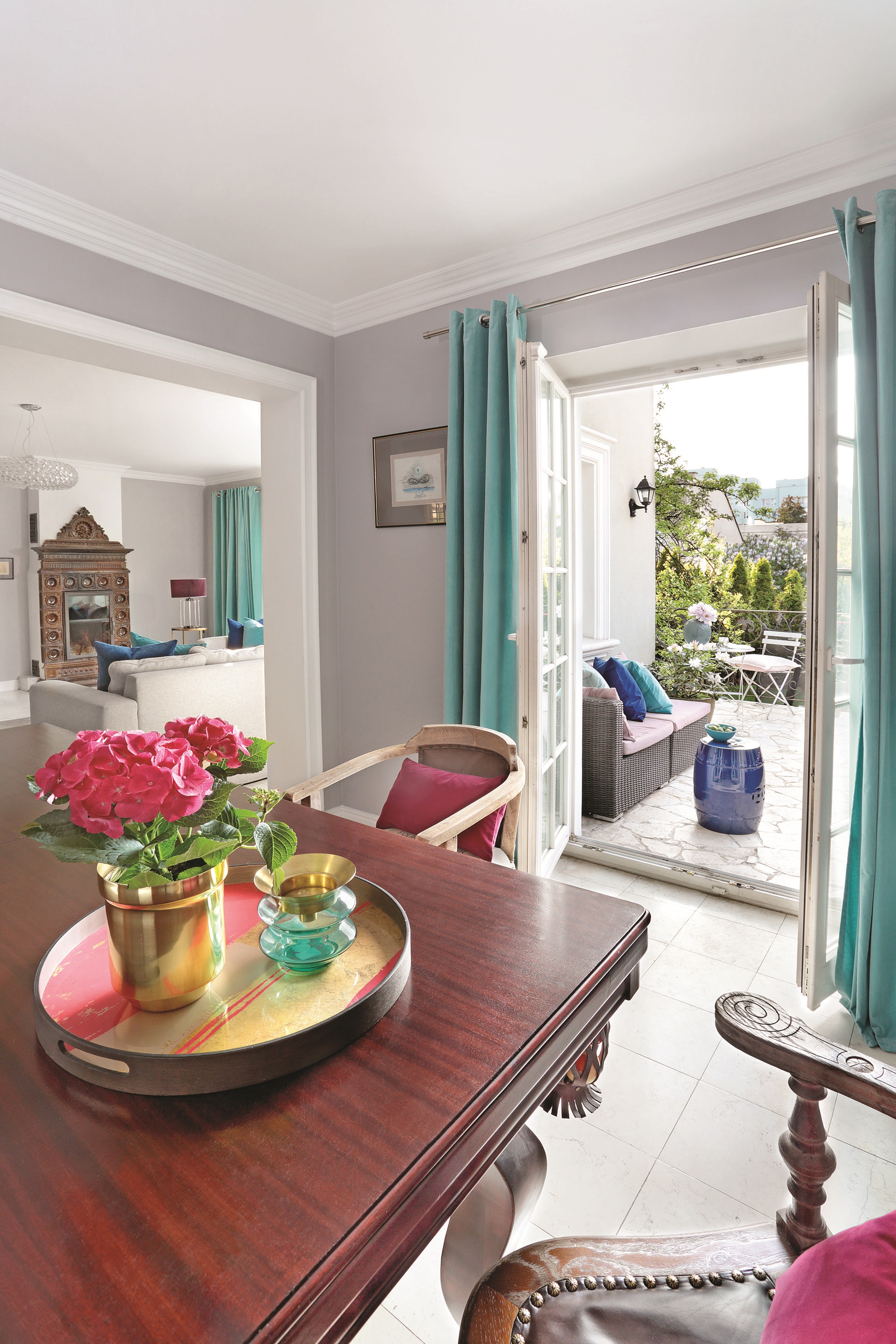 • Kuchnia, jadalnia i salon urządzone są na planie litery L. Część mebli i dodatków pochodzi z Decolor i Meubles de Charme.