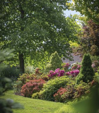 Stare owocowe drzewa, kwiaty jak z angielskich ogrodów i ozdobne trawy. Dużo cienia i słoneczne polanki. Spacerując, odkrywamy kolejne „pokoje” i… tajemnice.
