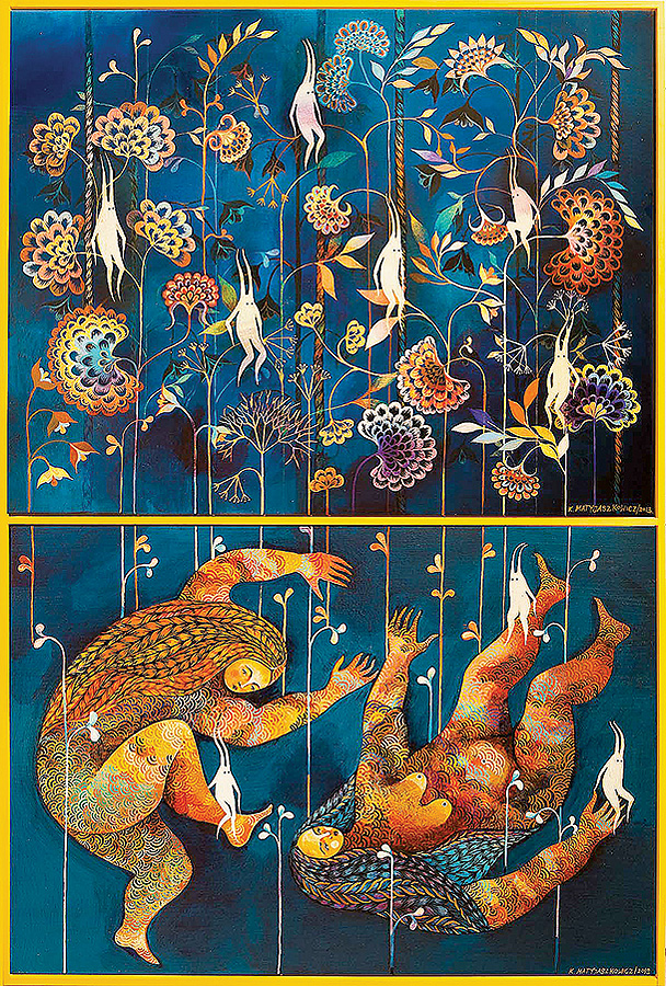 Karolina Matyjaszkowicz malarka, absolwentka Akademii Sztuk Pięknych w Łodzi. Beata Woźniak: Po obejrzeniu twoich prac aż strach pójść do lasu. Można się natknąć na jakieś stwory. Karolina Matyjaszkowicz: Bez obawy, te, które maluję, są raczej niegroźne. Na przykład takie Plumki... Słucham? Plumki. To niegroźne istotki przynoszące materialne szczęście. Zresztą nie mogły być złe, bo lubiły jajecznicę z boczkiem. Tak przynajmniej mówią wierzenia lu